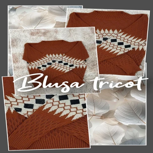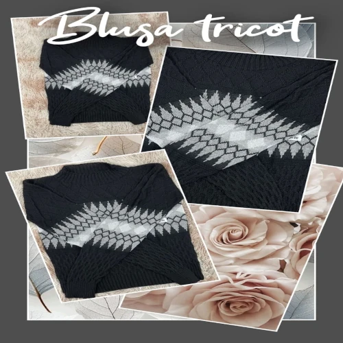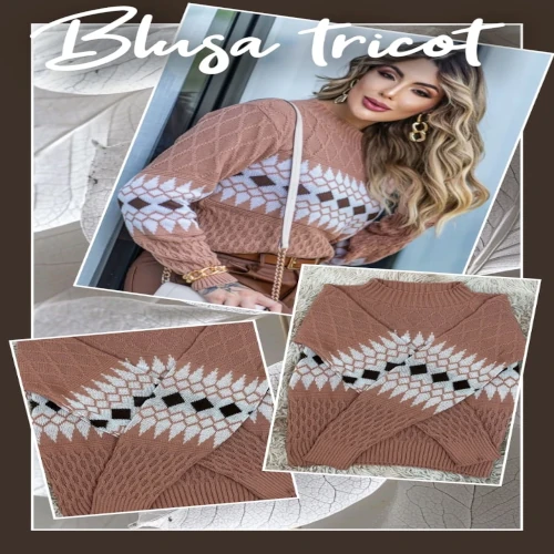 • Blusa Trico Mosaico Relevo Manga Longa.